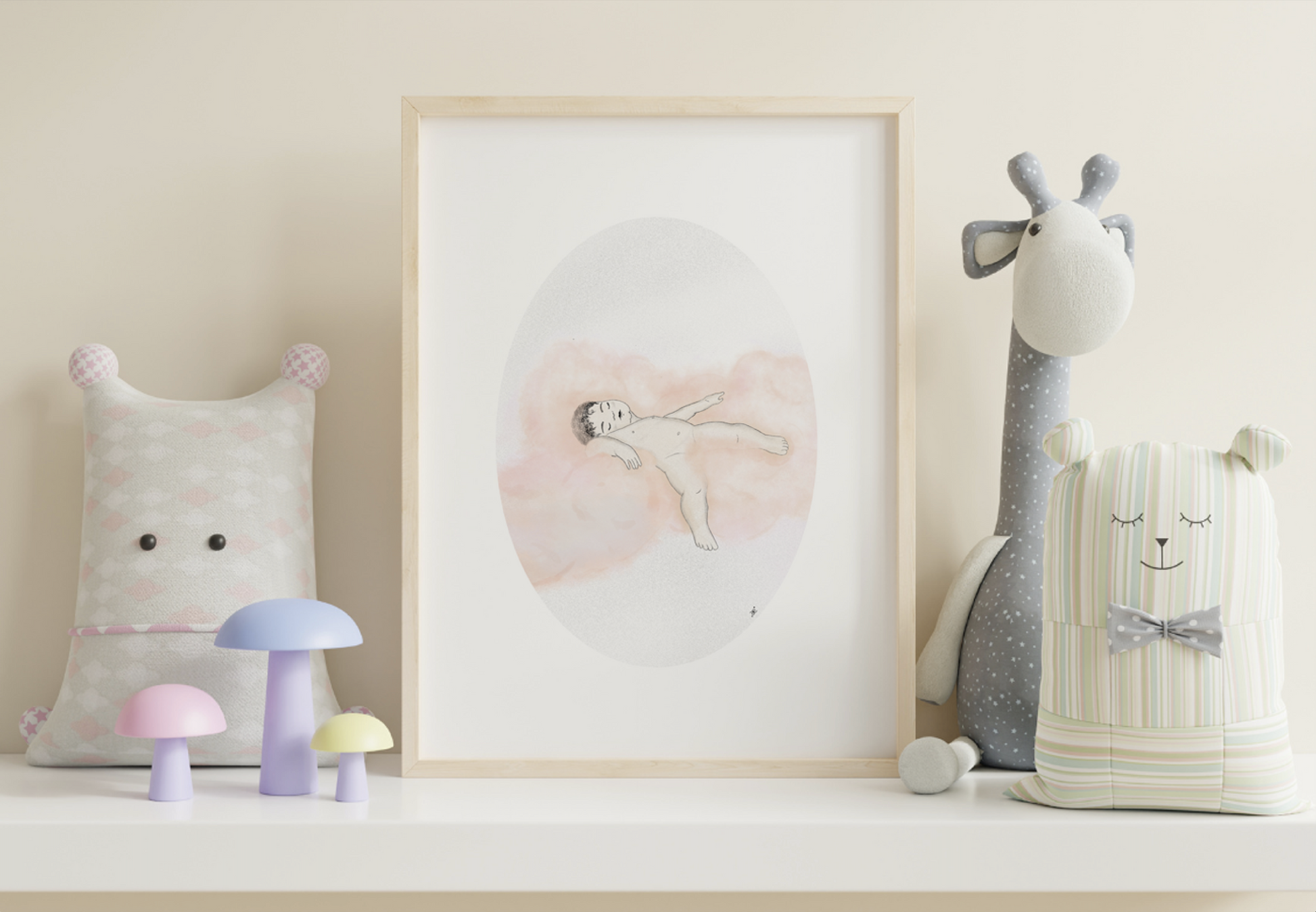 Mit zarten Farben und einer detailreichen Illustration bringt dieses Kunstwerk Wärme und Herz in jeden Raum. Ein stiller Begleiter für die ersten Lebensjahre – beruhigend, sanft und voller Liebe.